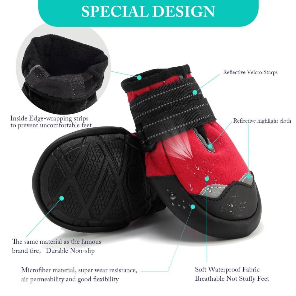 COMFORTABLE: Soft and waterproof, so allows the boots to be used indoors or outdoors, hot and cold in wet and dry conditions.Protection from sharp thorns and hot pavement.Effectively protect dog claws from heat, stones, glass, etc. It protect the weak paw from snow, ice, salt during winter.