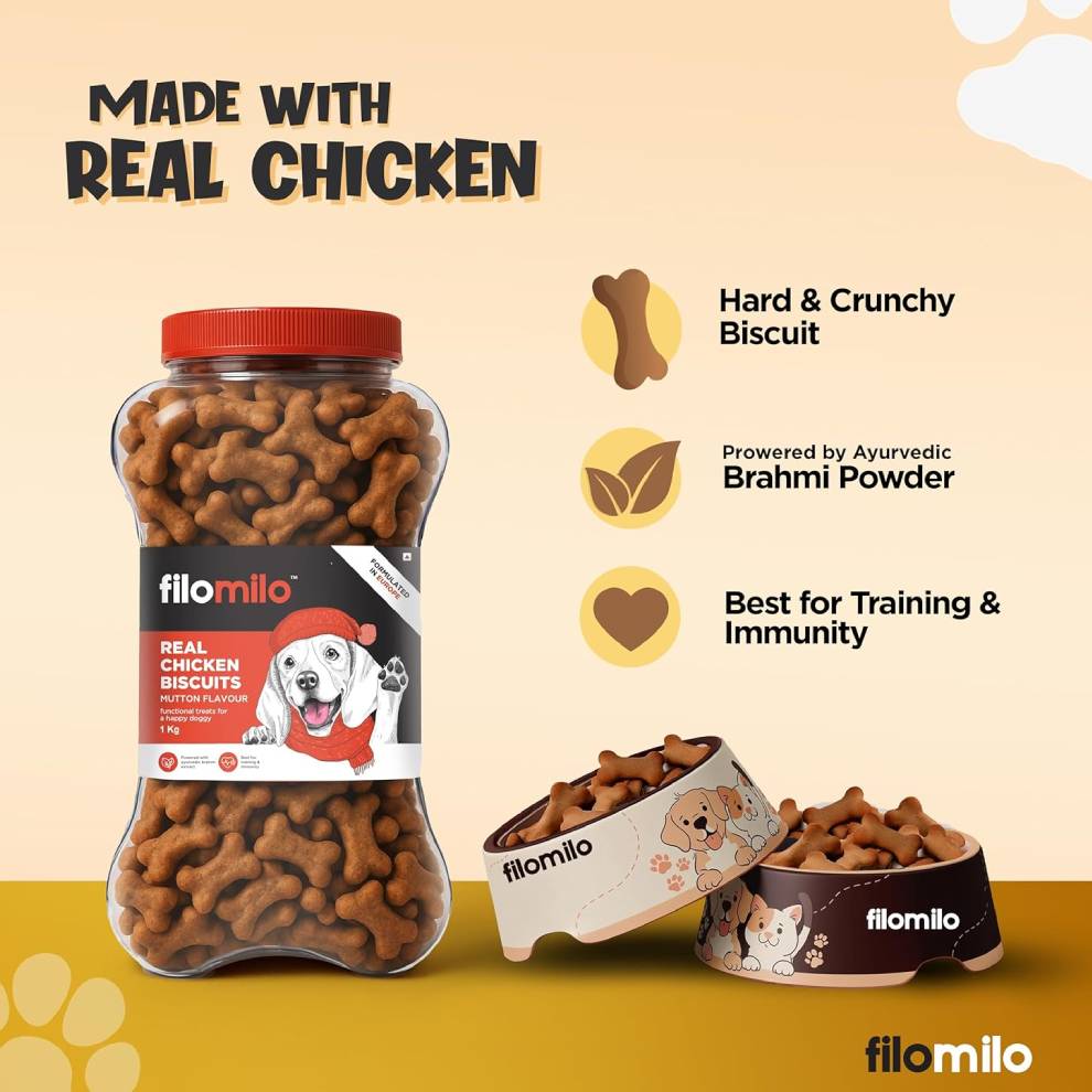 Calcium & Protein Rich: These dog snacks and treats, including chicken biscuits for dogs, provide a robust source of calcium and protein, promoting strong bones and healthy muscles. Perfect for both puppy treats and dog treats for adult dogs.